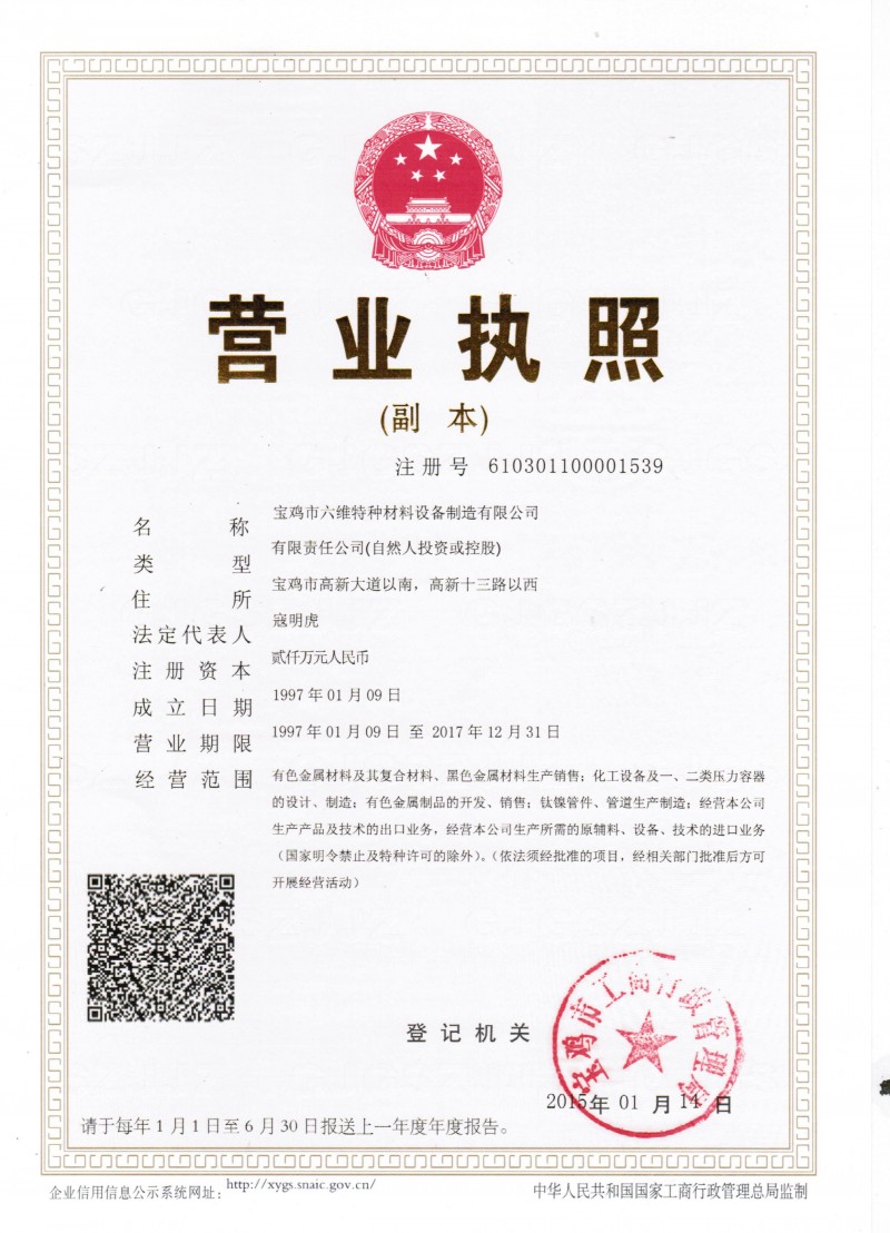 | 發(fā)證機(jī)構(gòu): | 寶雞市工商行政管理局 | 發(fā)證時(shí)間 : | 1997-01-09 |