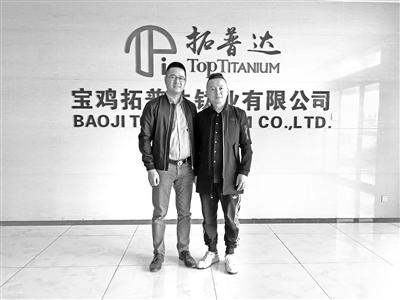 記者與拓普達鈦業(yè)有限公司董事長王勇錦(左)合影。